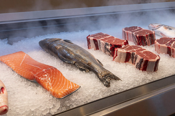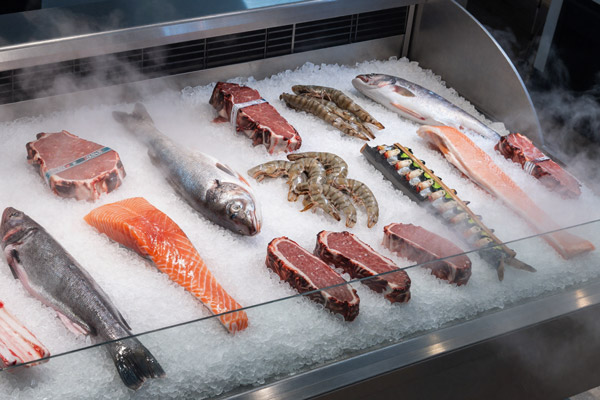 Рыба и мясо в большой витрине. 25 кг/сутки